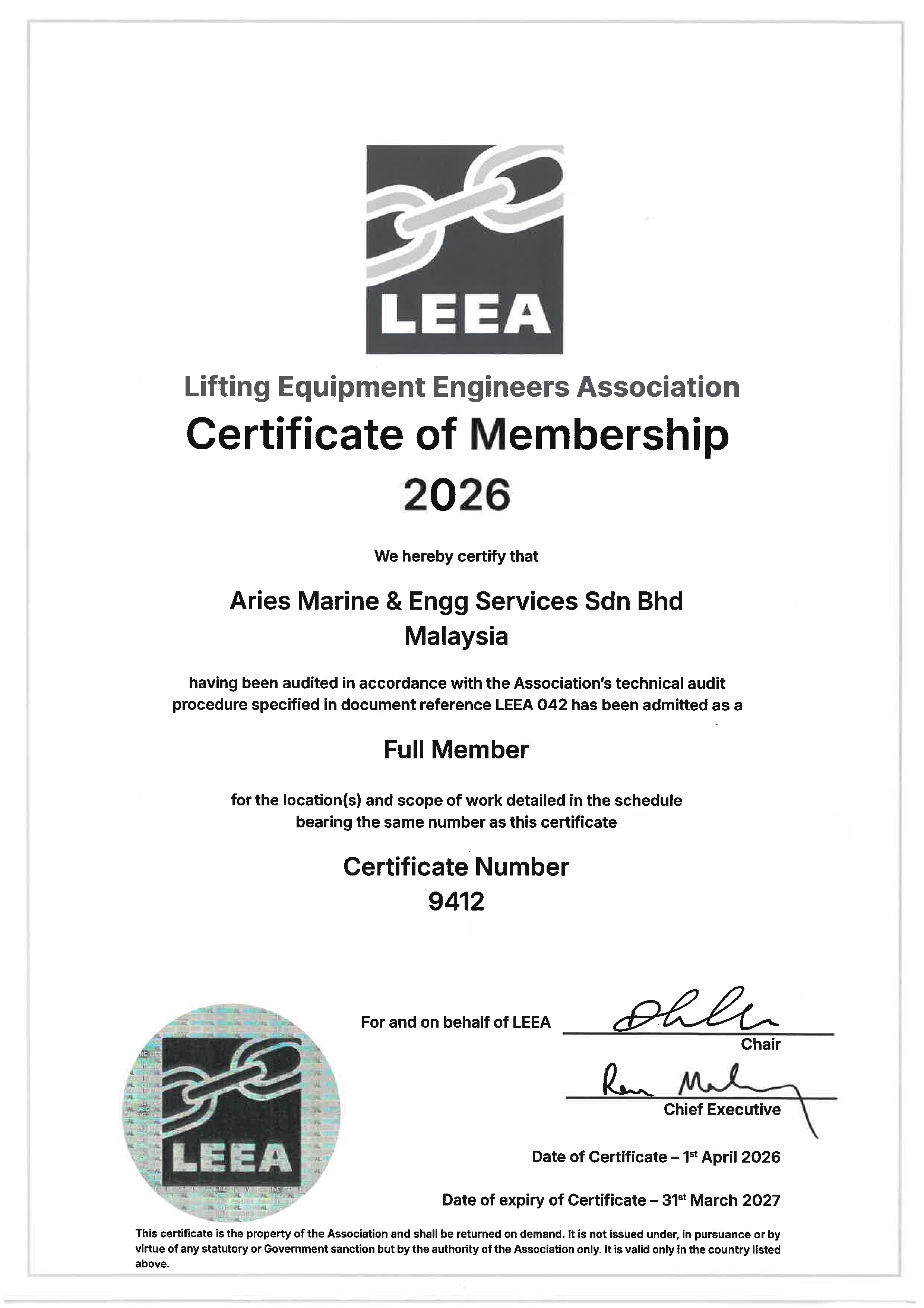 LEEA Approval - Aries Malaysia 2026