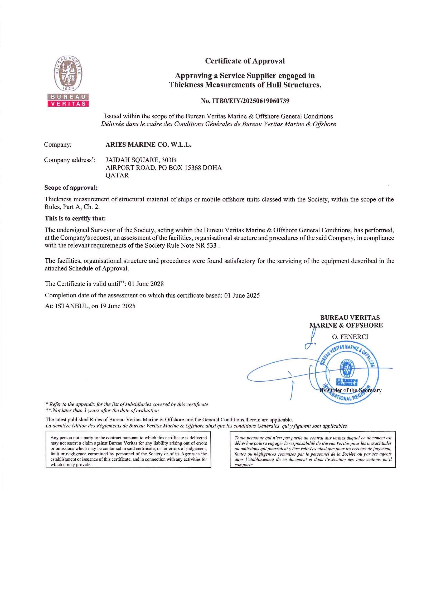 BV Class Certificate - Qatar