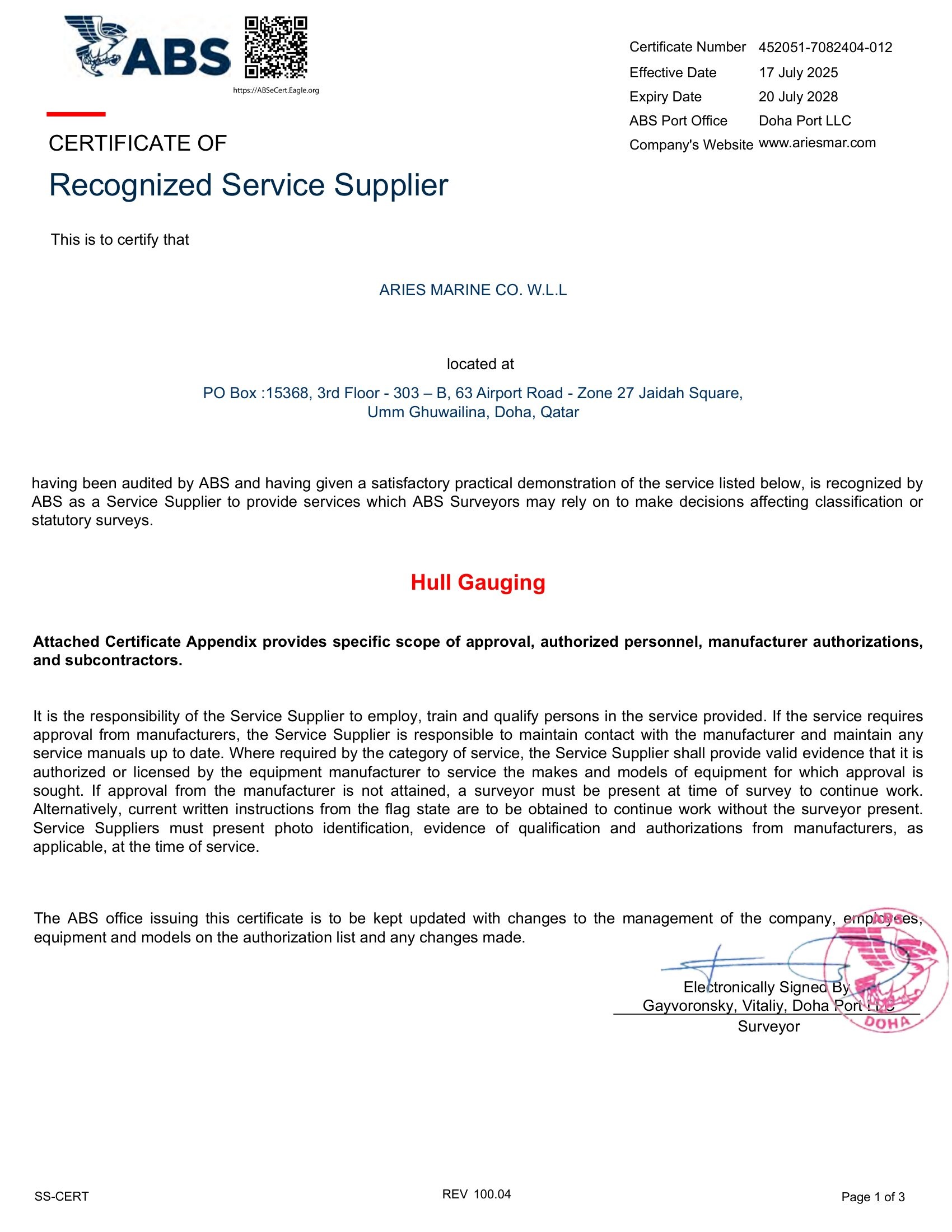 American Bureau of Shipping (ABS)- Hull Gauging