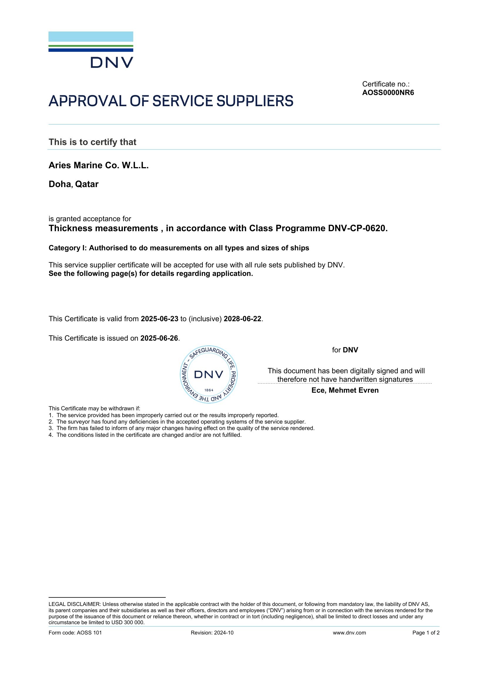 DNV Class Certificate - Qatar